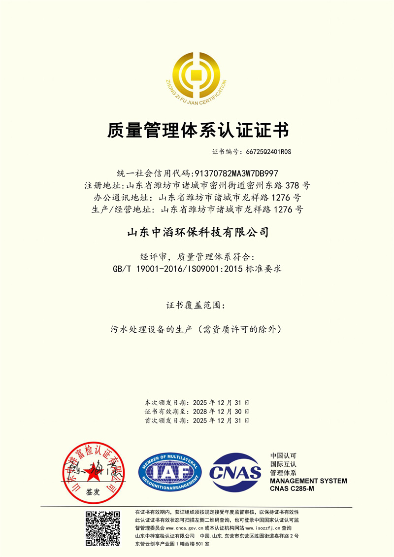 质量管理体系认证证书